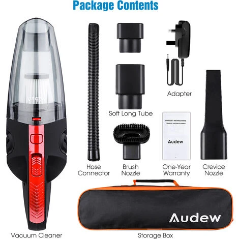 【Quick Charge & Long Use Time】- Audew cordless car vacuum comes with premium Lithium battery, which can be quick recharged within 3-5hours, and keeps super long cleaning time about 20-30minuntes. It also has a battery indicator, displays remaining battery life so you know when to recharge.