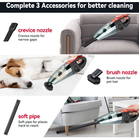 【Versatility & Wet-Dry Amphibious】 – Durable use in wet/dry conditions, it can easily clean dust, crumbs, cat litter, pet hairs, as well as spilled milk, liquids. Equipped with 3 different types of attachments to make it clean well every areas in your home or car. No more worry about liquid and dead corners!