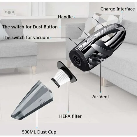 - 【2200mAh Li-ion Battery and Quick Charge】: 2200mAh lithium battery and handheld vacuum cleaner battery usually only takes 3-4 hours to fully charge the battery, the vacuum cleaner can be used by hand for about 25-30 minutes.