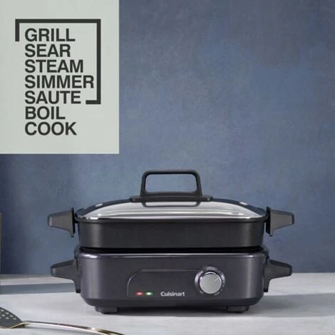 The Cuisinart Cook In enables you to quickly and easily prepare the home cooked meals you want, from scratch. It’s neither a slow cooker or a fast cooker but it is a griddle, hob, steamer and pan in one. Easy to use and easy to clean, the Cuisinart Cook In is big enough for a big family meal, yet compact enough to prepare the perfect meal for one. Ideal for midweek meals when you’re in a rush or equally at home cooking for a relaxed weekend dinner with friends.