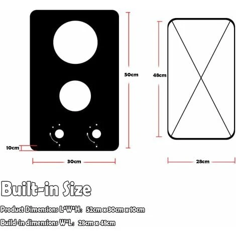 - ✔️ Easy Installation & Safe — Product size: 20.47″L x11.8 “W x 3.93″H, cutout size: 11” W x 18.9″L. Plug and play, this black glass gas hob can be installed quickly and easily, with electronic ignition system, no battery required. And features thermocouple protection, safe grates & knobs, and heavy iron cast support.