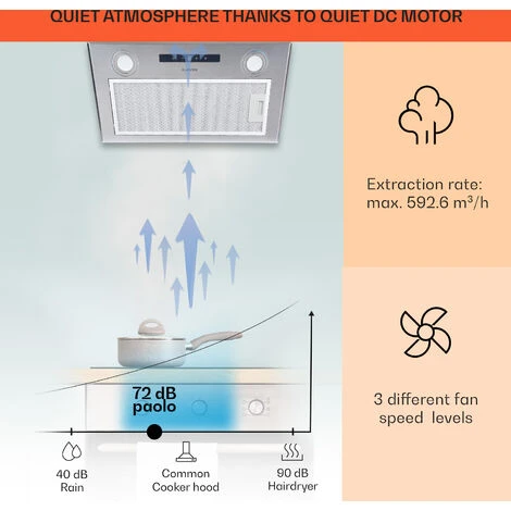 A MODE FOR BREAKFAST, LUNCH & TEA: With three speeds to choose from, this stainless steel cooker hood with a powerful 592m³/h airflow rate has fan speed for every type of cooking. Let our vent hoods improve the air quality while removing odours.
