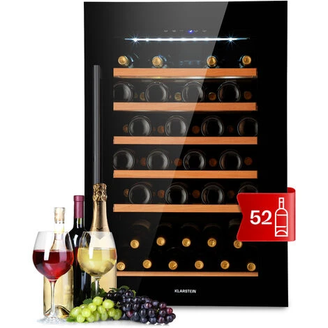 Thanks to the Klarstein Vinsider 52 Built-In Uno built-in wine fridge, you can offer the wine the ideal conditions for its full aroma and the perfect drinking temperature. All you have to do is open the elegant front door with the darkened picture window and position the wine on one of the 5 wooden shelves. Then, set the desired cooling temperature and your wine refrigerator from Klarstein will take care of the ‘feel-good wine climate’. When you and your guests want to enjoy the wine, it is well-tempered: at all times and right next to you.