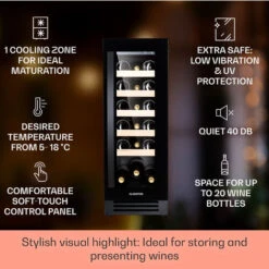 Klarstein Vinsider 24 Built-In Uno Onyx Edition Built-In Wine Fridge 24 Bottles 57 L