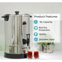 Commercial Catering Urn Kitchen Hot Water Boiler Tea Coffee Stainless Steel 15L
