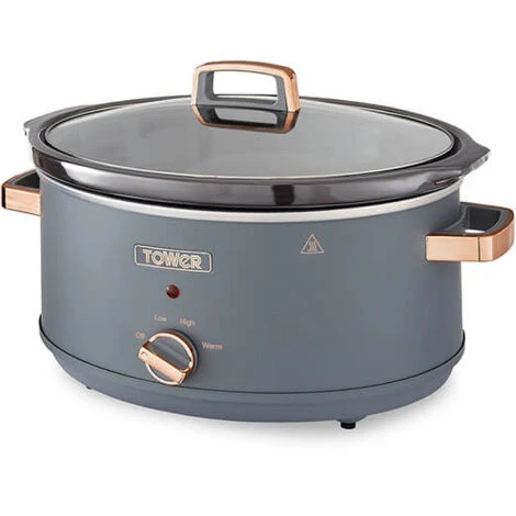 Make deliciously healthy and cost-effective meals for the whole family with this Tower Cavaletto 6.5 Litre Slow Cooker. Finished in classic Cavaletto grey with rose gold accents, this slow cooker has three heat settings to choose from – low, high and keep warm – so you can cook a range of dishes, from stews, casseroles and curries to soups and bread, all ready when you get home in the evening.