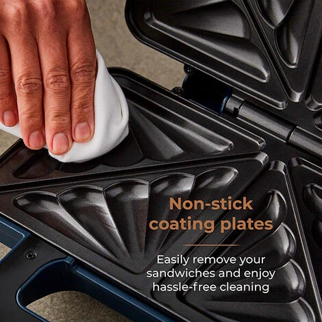From ham and cheese to chocolate and strawberries, this Tower Cavaletto Sandwich Maker is an absolute kitchen essential. Finished in classic Cavaletto midnight blue with rose gold accents, Tower has brilliantly designed this toasted sandwich maker with deep fill ridge plates, allowing more room for your favourite ingredients whilst the ridged edge seals them inside your sarnie. The non-stick coated plates promote healthier eating options, requiring no oil or butter for flawless cooking every time. It also helps with removing the sandwich without leaving any residue behind requiring only a quick wipe with a damp cloth to clean them.
